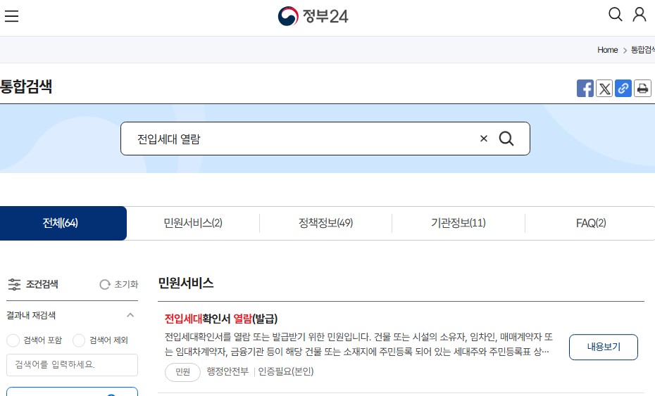 - 정부24 홈페이지