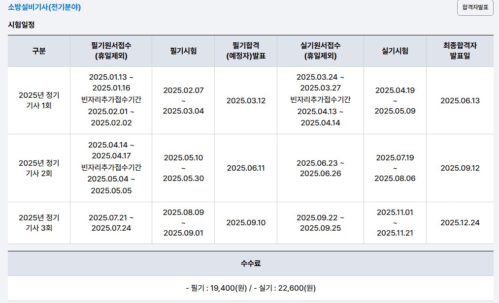 2025년 소방설비기사 전기분야 시험일정은 한국산업인력공단 Q-Net에서 공식 발표되며, 연 3회 실시됩니다.