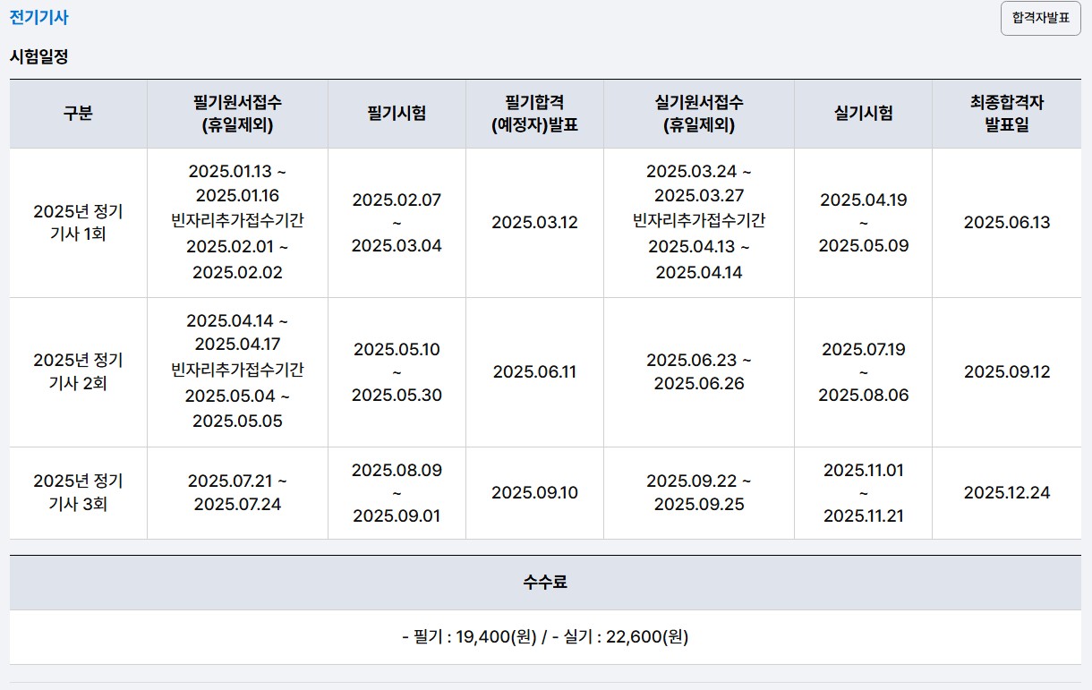 2. 2025년 전기기사 시험 일정